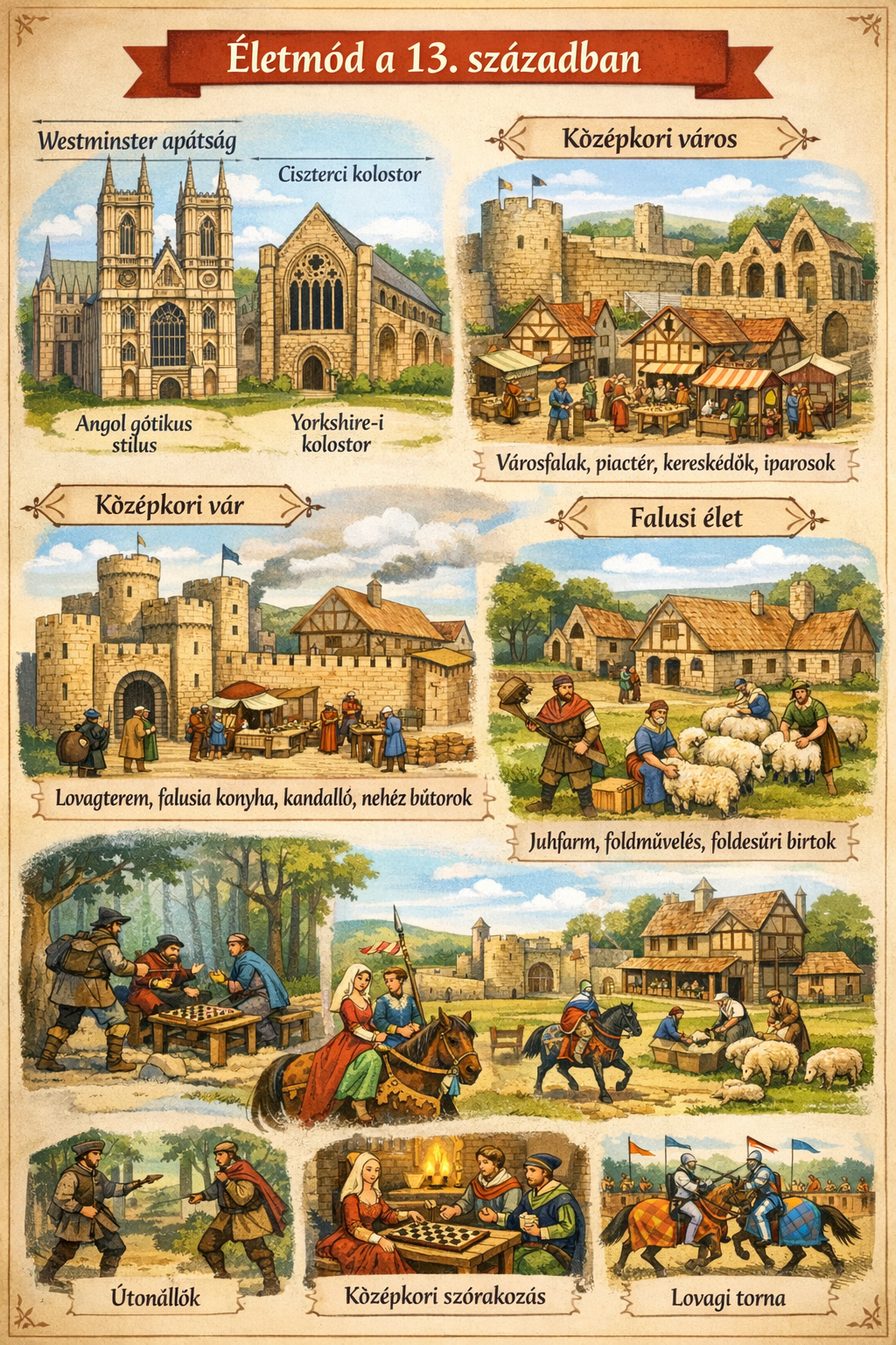 A vidéki élet is fellendült, fokozatos fejlődés figyelhető meg. A földesúr pénzben kezdte szedni a járadékot a parasztoktól, az egyre jobban elterjedő luxuscikkek megvásárlásához pénzre volt szüksége. Nőtt a juhfarmok száma, ezek fenntartásához kevesebb emberre volt szükség, mint a szántó műveléséhez, így a földesúr gyakran szabadította fel feleslegessé vált parasztjait. Az így kialakuló szabad munkaerőt bérmunkásként alkalmazták az iparosodó városokban. Még mindig megmaradt azonban a földesúr saját kezelésű birtokának a jelentősége, ahol önellátó gazdálkodást folytattak, és csak azokat az iparcikkeket vásárolták meg, amit maguk nem tudtak előállítani (szőrme, selyem, fűszerek). A kereskedelem fejlődése szükségessé tette az úthálózat kiterjesztését. Gyakran a régi római utakat újították fel. Ezek sokszor sűrű erdőkön keresztül vezettek, így nem voltak védve a rablóktól. Ezért a földesúri családok sem látogatták egymást gyakran, inkább saját otthonukban szórakoztak. A nők főleg kézimunkáztak, a férfiak fegyvereik javítgatásával, tisztításával töltötték az időt. Kedvelt szórakozás volt a közös éneklés, a sakk, a dámajáték. Szívesen látták a vándorkomédiásokat is. Szerették a labdajátékokat, a táncot, és a fegyverhasználat gyakorlására szolgáló lovagi tornákat.