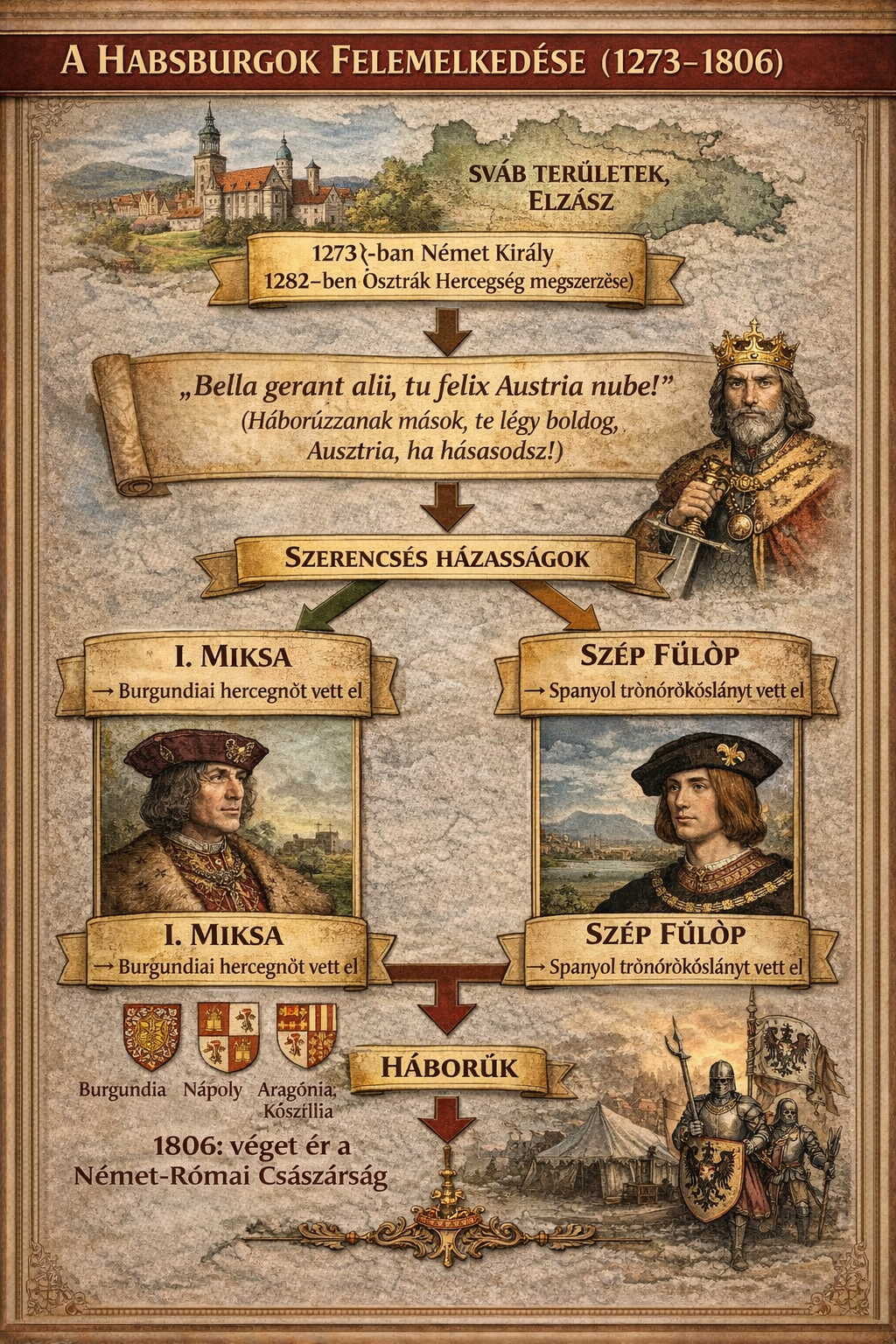 - 1282-ben Ottokár cseh király legyőzése után megszerezte az osztrák hercegséget;
