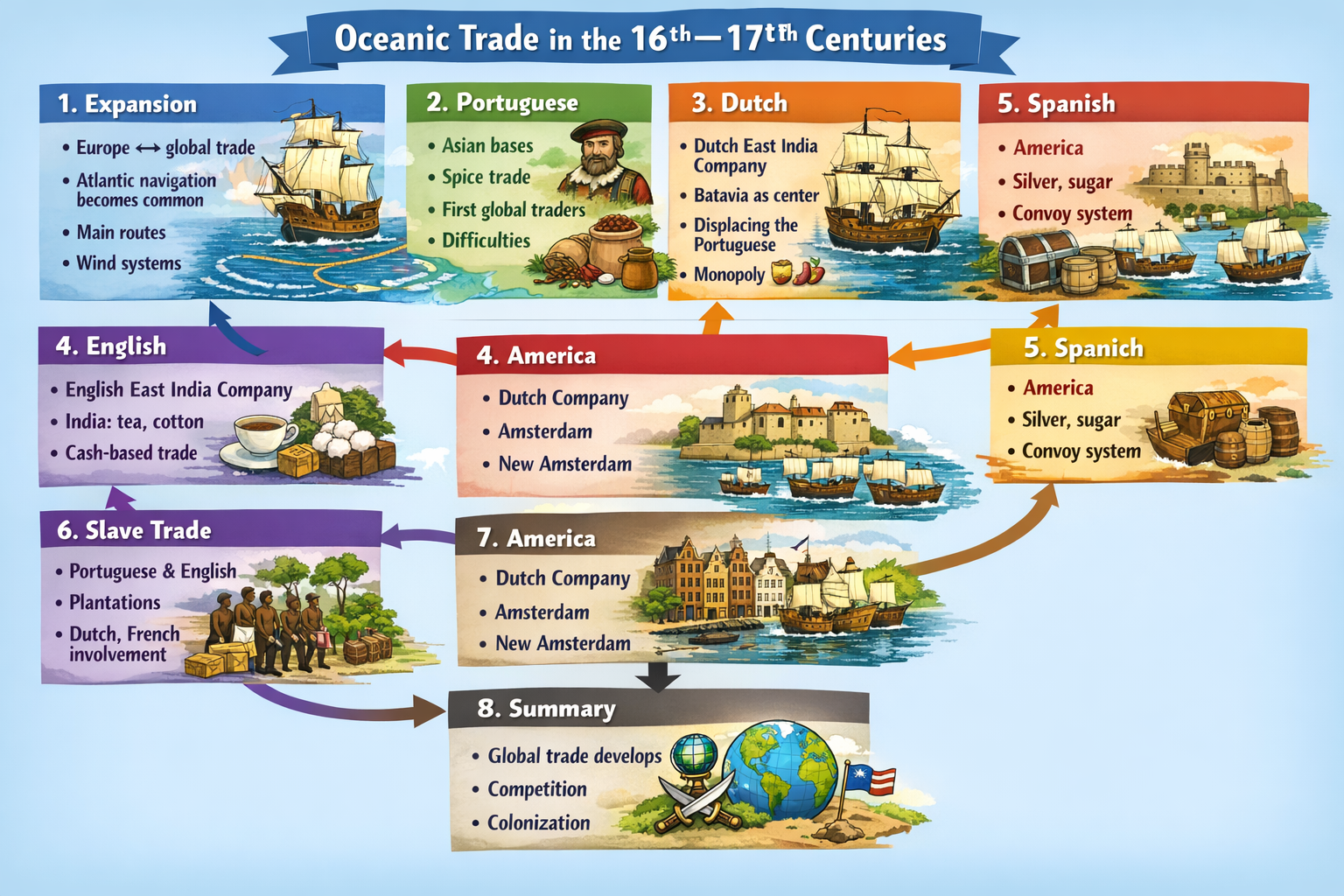 At the beginning of the 16th century, the Portuguese strengthened their bases in Asia, and their military power allowed them to defend themselves from attacks by Eastern Muslim, Arab, Chinese, and Malay sailors. For about a hundred years, they dominated the route to India. Their trade was characterized by variety and geographic dispersion. They had limited exchange goods and capital, so they developed an entire network of secondary commercial sectors. They mainly transported spices to Europe but were also involved in local trade and were the first global traders. Trade was hindered by disasters, and the sea routes posed extreme difficulties for sailors. Ships were often damaged, and mutinies were common among the crews, mostly recruited from the lower classes. The Portuguese had the best navigators in the world, although they lacked detailed geographical knowledge. Their captains were skilled, mostly from humble backgrounds, with noble commanders appointed over them. In their pursuit of profit, they often overloaded their ships and sent them to sea in worn-out conditions.