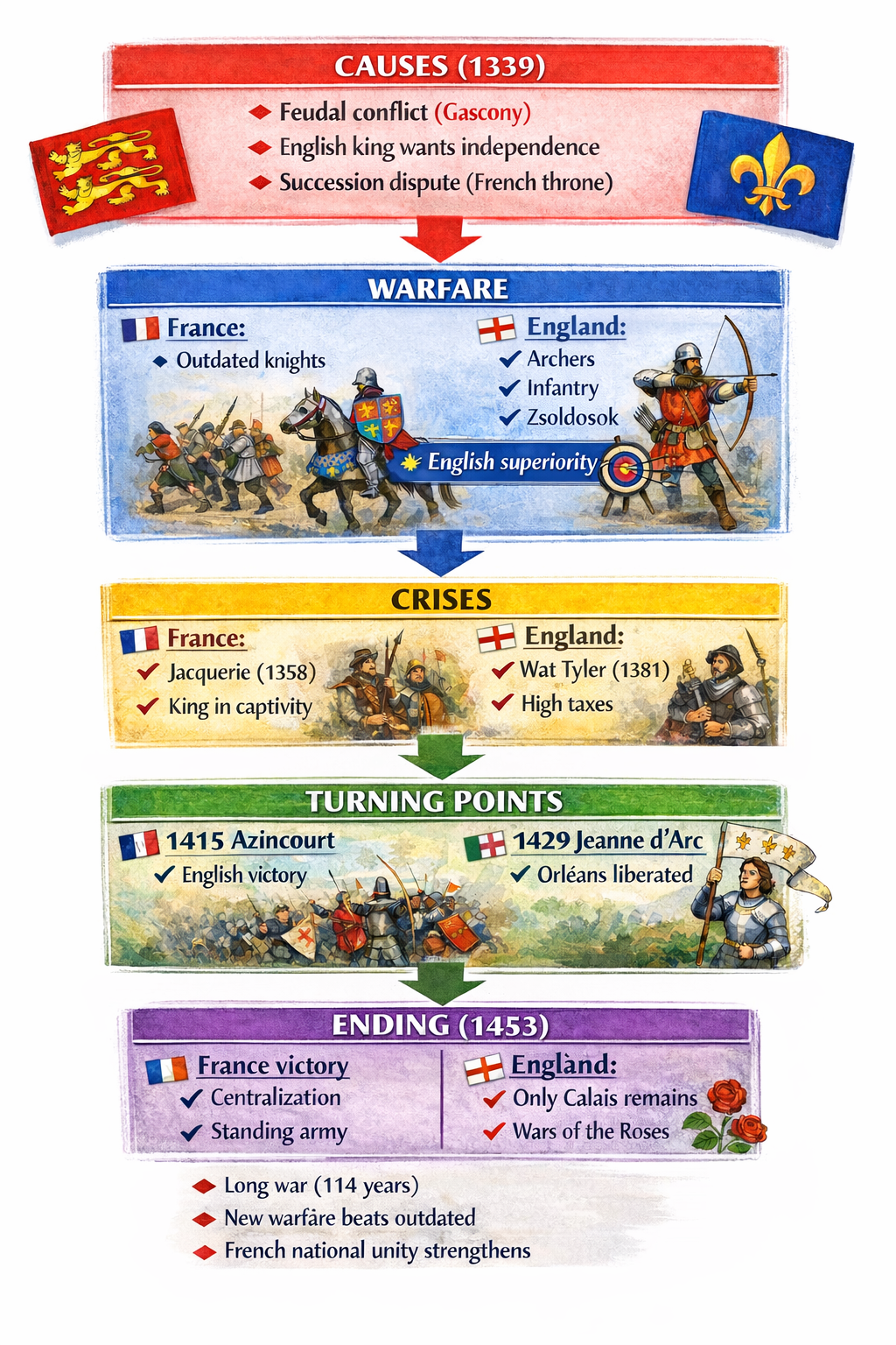 - The war lasted from 1339 to 1453—114 years—with no real peace for 5–6 generations.